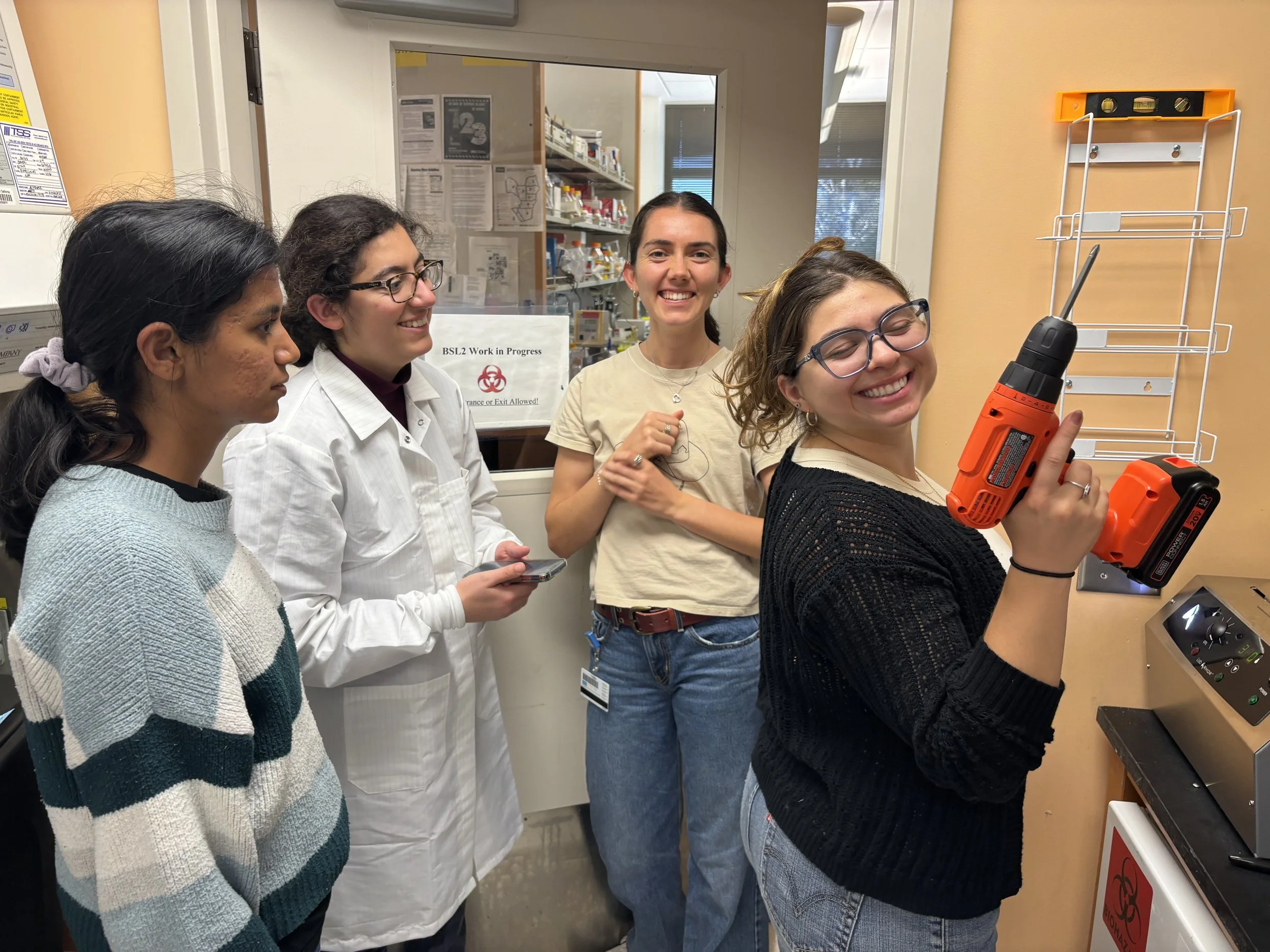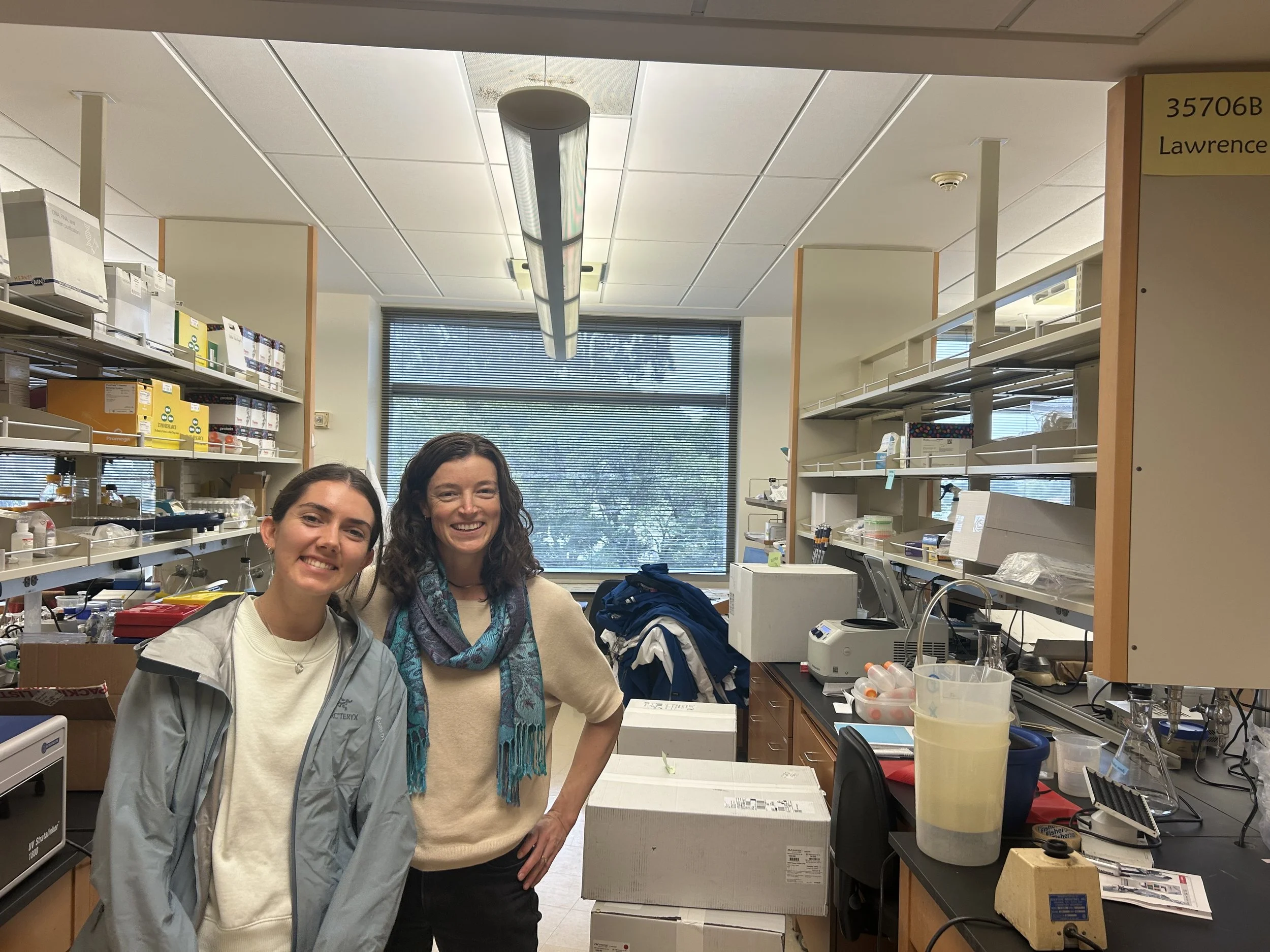 3/31/25: Colette, Marcella, and Ruchira join the Lawrence lab for their spring rotation. Science and setup are happening!